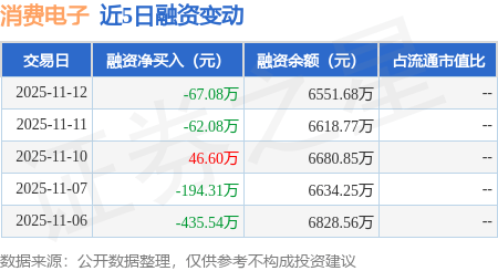 证券之星消息,11月12日,消费电子(159732)融资买入851.28万元,融资偿还918.37万元,融资净卖出67.08万元,融资余额6551.68万元。