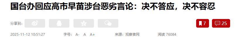 对此,日媒立刻进行了激烈的报道,毕竟就在四天前,日本首相高市早苗在国会中大胆表态:“台湾有事就是日本有事”,甚至不排除武力干预台海局势的可能。这一言论不仅引发了中国政府的强烈反应,更让日本政坛开始“围攻”高市,认为其言之不慎,将日本置于危险之中