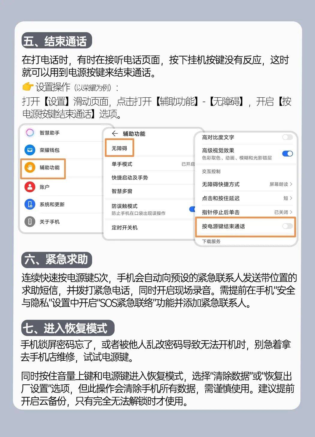 开机、关机只是手机电源按键最基本的功能,你知道吗?它还藏着很多实用技能。它还藏着很多实用功能