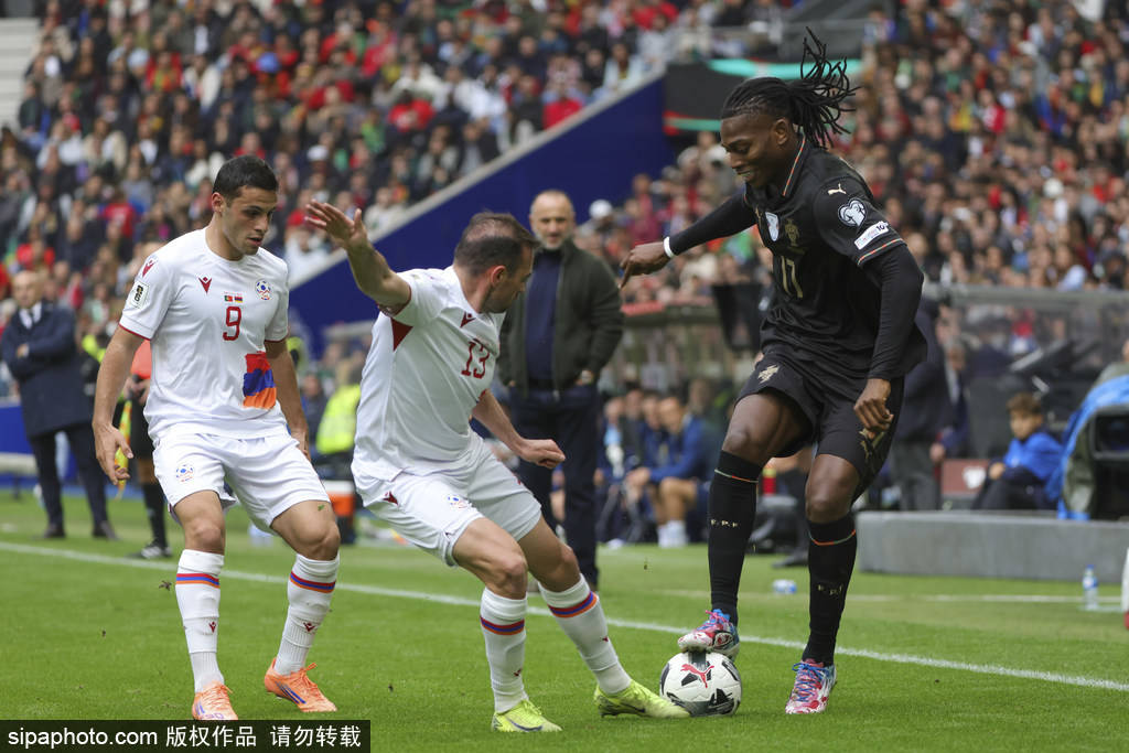 第81分钟,B费禁区左侧传中,菲利克斯后点头球顶向中路,坎塞洛伸腿蹭到皮球但未改变皮球方向,若昂-内维斯小禁区前凌空射门上演帽子戏法,葡萄牙主场8-1领先亚美尼亚。