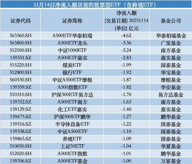 与此同时,国泰煤炭ETF、嘉实化工ETF、国泰半导体设备ETF、国泰中证畜牧养殖ETF的净流出额分别为1.99亿元、1.40亿元、1.22亿元、1.09亿元。