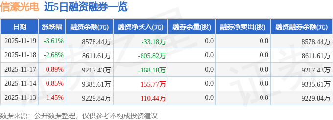 信濠光电融资融券信息显示,融资方面,当日融资买入711.19万元,融资偿还744.36万元,融资净偿还33.18万元。融券方面,融券卖出0.0股,融券偿还0.0股,融券余量0.0股,融券余额0.0万元。融资融券余额8578.44万元。