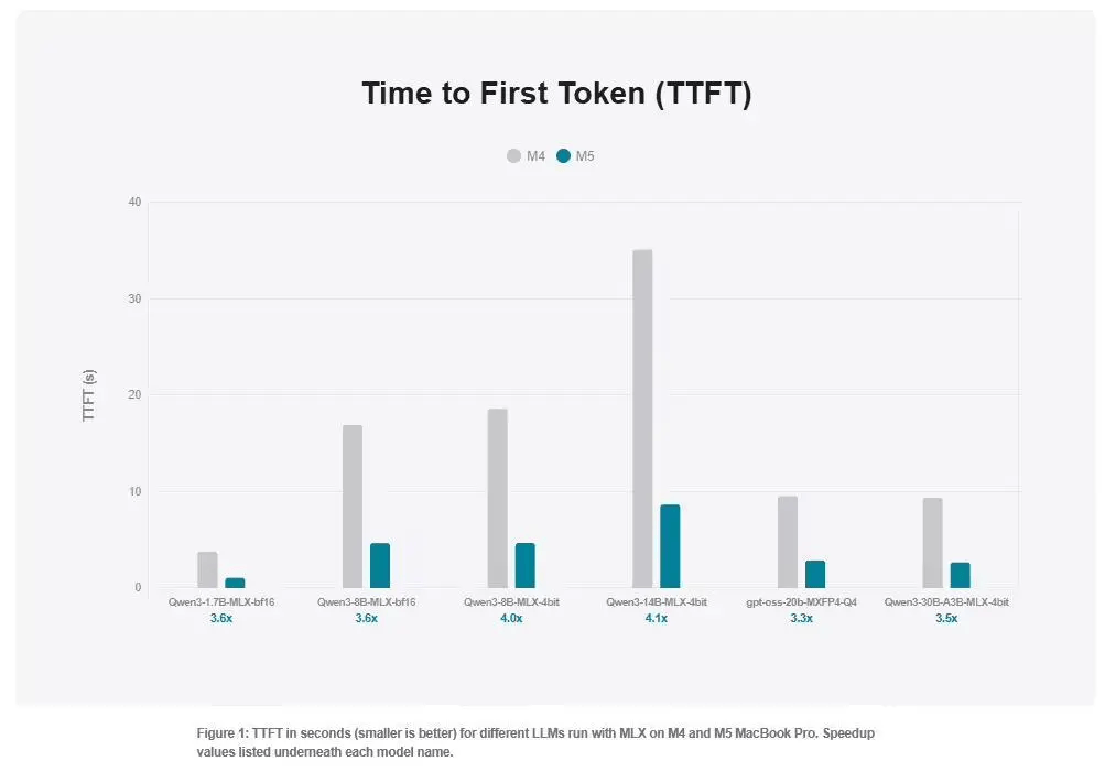 11 月 21 日消息,苹果机器学习研究博客于 11 月 19 日发布博文,公布了 M5 芯片的最新性能数据,重点展示了其在运行本地大语言模型(LLM)方面的显著优势。