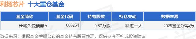 根据2025基金Q3季报公募基金重仓股数据,重仓该股的公募基金共1家,其中持有数量最多的公募基金为长城基金的长城久悦债券A。长城久悦债券A目前规模为0.12亿元,最新净值1.2042(11月20日),较上一交易日下跌0.5%,近一年上涨20.38%。该公募基金现任基金经理为张棪 张勇。张勇在任的基金产品包括:长城积极增利债券A,管理时间为2020年9月1日至今,期间收益率为9.03%;长城悦享回报债券A,管理时间为2022年4月13日至今,期间收益率为-1.79%。张棪在任的基金产品包括:长城增强收益定开债券A,管理时间为2017年9月6日至今,期间收益率为40.91%;长城稳固收益债券A,管理时间为2017年9月6日至今,期间收益率为28.06%;长城中债1-3年政金债A,管理时间为2020年8月11日至今,期间收益率为65.51%。