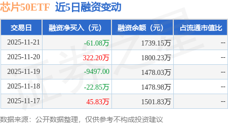 证券之星消息,11月21日,芯片50ETF(516920)融资买入318.81万元,融资偿还379.89万元,融资净卖出61.08万元,融资余额1739.15万元,近20个交易日中有12个交易日出现融资净买入。