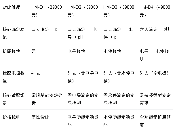 1. HM-D1(基础款):聚焦核心四大滴定与 pH 测量,满足实验室常规分析需求,性价比突出,适合基础检测场景