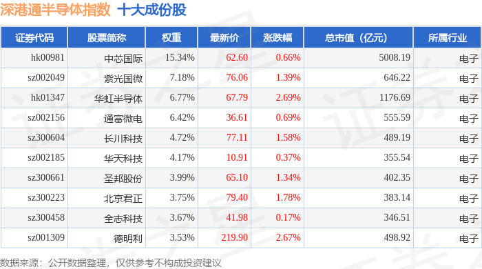 证券之星消息,11月28日,深港通半导体(983067)指数报收于13551.2点,涨1.09%,成交301.33亿元,换手率2.47%。当日该指数成份股中,上涨的有29家,矽电股份以8.72%的涨幅领涨,下跌的有10家,FORTIOR以1.56%的跌幅领跌。