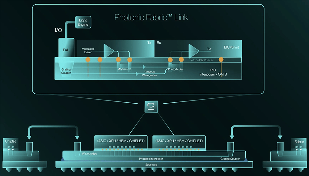 其光子结构技术具有出色的热稳定性,能够在大型、数千瓦级XPU和交换机产生的极端热环境下可靠运行。这使得光子技术能够与高功率XPU和交换机垂直封装在3D封装中,实现光子连接直连到XPU内部。