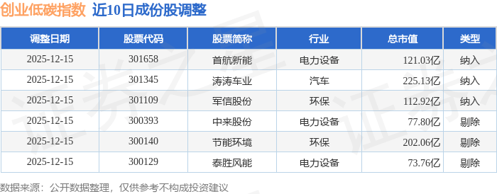 近10日内创业低碳(399259)指数成份股做了调整,新纳入了3只股票,剔除了3只股票。
