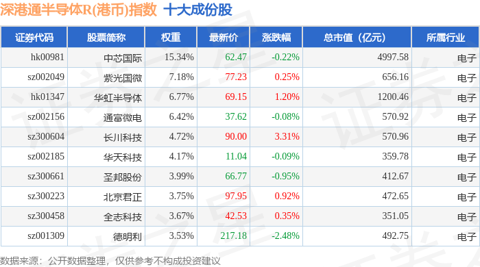 深港通半导体R(港币)(483068)指数十大成份股详情如下: