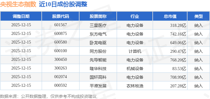 近10日内央视生态(399556)指数成份股做了调整,新纳入了8只股票。