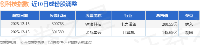 近10日内创科技(399276)指数成份股做了调整,新纳入了1只股票,剔除了1只股票。