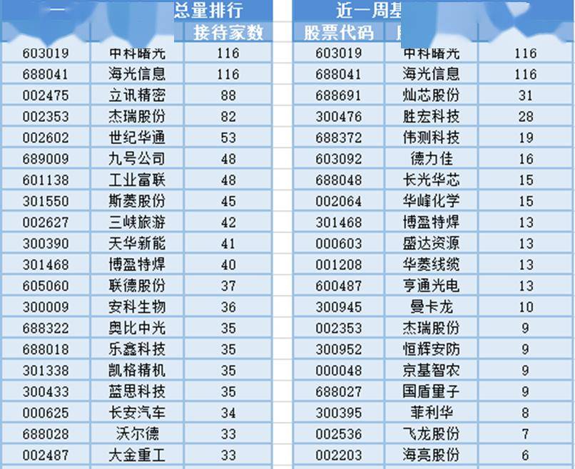 将时间周期缩短到最近一周(12月5日-12月12日)来看,基金调研数量第一的公司是中科曙光,中科曙光属于专用计算机设备行业,主营业务为高端计算机、存储、安全、数据中心产品的研发及制造,同时大力发展数字基础设施建设、智能计算等业务。中科曙光共被116家基金机构调研,其次被调研数量较多的股票是海光信息、灿芯股份和胜宏科技,分别接受116家、31家和28家基金机构的调研。