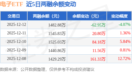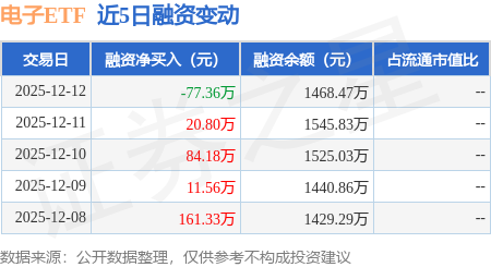 证券之星消息,12月12日,电子ETF(159997)融资买入553.39万元,融资偿还630.75万元,融资净卖出77.36万元,融资余额1468.47万元,近20个交易日中有12个交易日出现融资净买入。