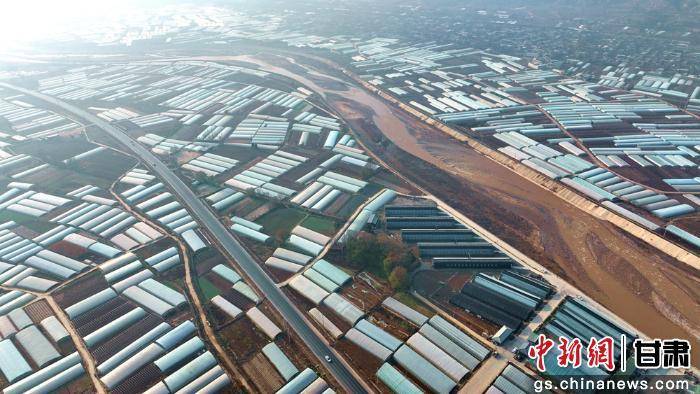 图为航拍下的天水市武山县山丹镇周庄村的现代化设施农业产业园。武山县融媒体中心供图