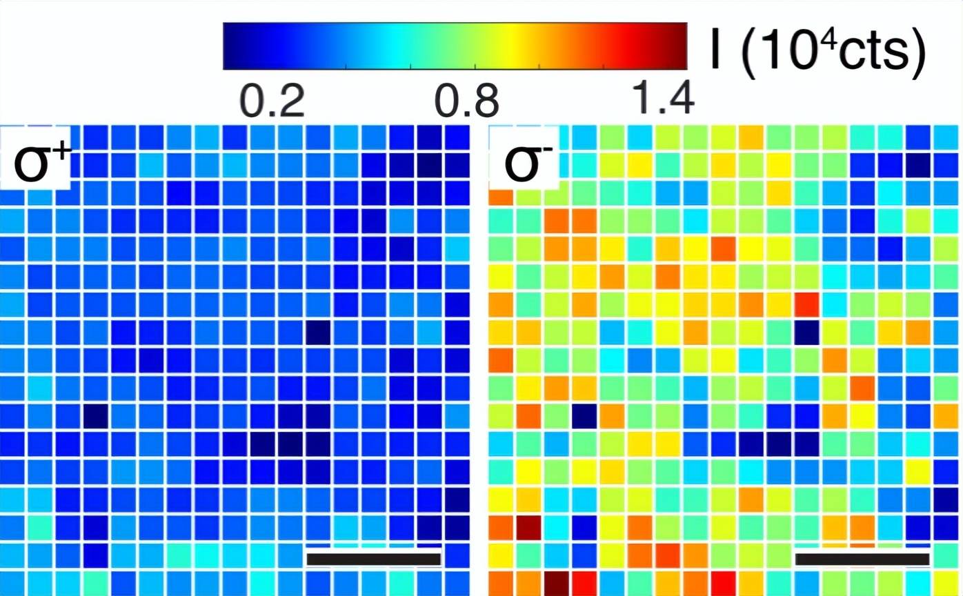 在室温下,材料被激发后发出的光,不再是均匀混合的左旋光和右旋光,而是显著地偏向于左旋圆偏振光。