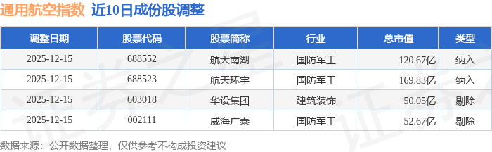 近10日内通用航空(980076)指数成份股做了调整,新纳入了2只股票,剔除了2只股票。
