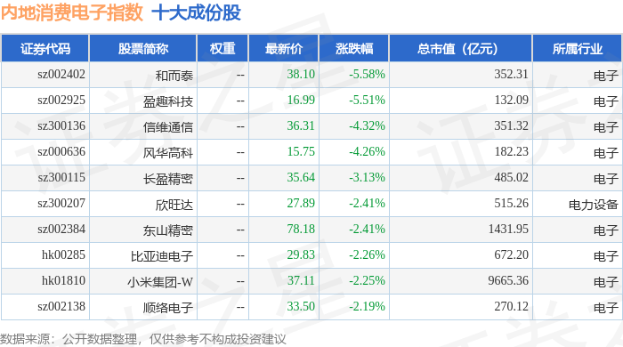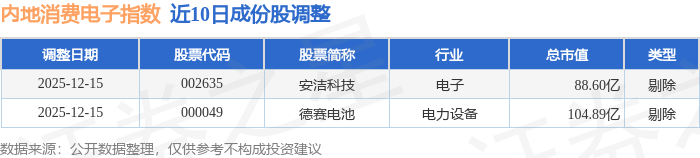 近10日内内地消费电子(983105)指数成份股做了调整,剔除了2只股票。