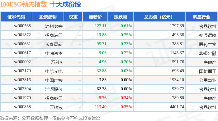 近10日内100ESG领先(970030)指数成份股做了调整,新纳入了5只股票,剔除了5只股票。