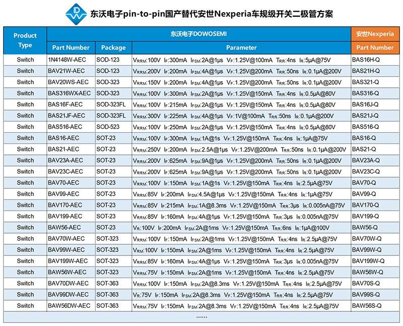 东沃1N4148W-AEC(SOD-123)替代安世BAS16H-Q