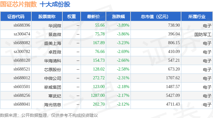 国证芯片(980017)指数十大成份股详情如下: