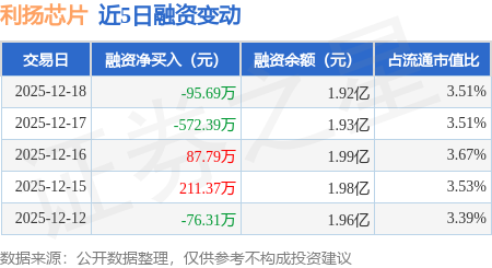 证券之星消息,12月18日,利扬芯片(688135)融资买入720.15万元,融资偿还815.83万元,融资净卖出95.69万元,融资余额1.92亿元。