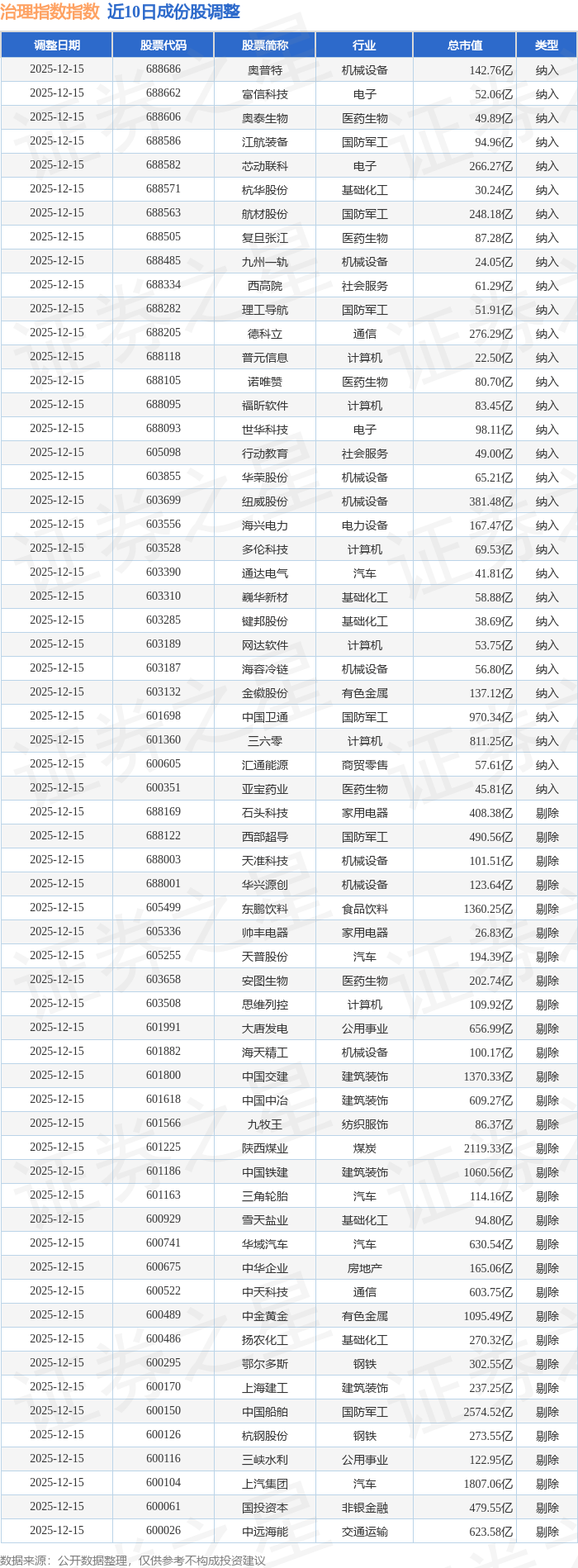 近10日内治理指数(000019)成份股做了调整,新纳入了31只股票,剔除了31只股票。