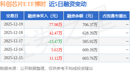证券之星消息,12月19日,科创芯片ETF博时(588990)融资买入340.1万元,融资偿还262.11万元,融资净买入77.98万元,融资余额706.37万元。