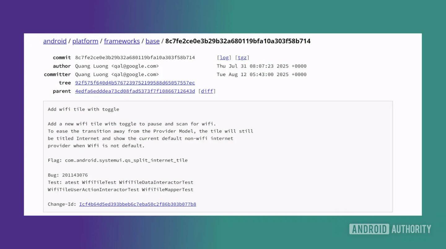 但整个事件似乎在本月发布的 Android 16 QPR2 中出现了转机,知名类原生 Android 系统 LineageOS 的核心开发者 Michael Bestas 发现,谷歌公开的 AOSP 代码中出现了一些线索,暗示公司计划将“互联网”大开关重新拆分成 Wi-Fi 和移动数据两个独立开关。