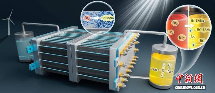 长寿命多电子转移溴基液流电池示意图。大连化物所供图