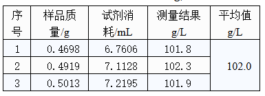 测试结果:经测定,槽液总镍含量(以镍计)约为102.0g/L。