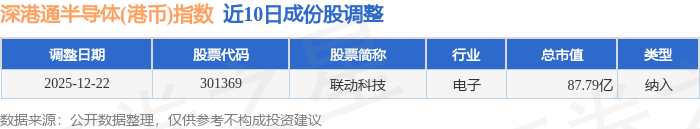 近10日内深港通半导体(港币)(983068)指数成份股做了调整,新纳入了1只股票。