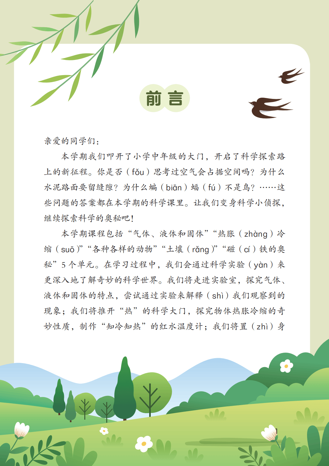 为帮助三年级学生更好地预习和复习科学知识,快速了解小学科学教材的具体内容,我们特别整理了2026湘科版三年级科学上册电子课本,以图片的形式呈现给大家。