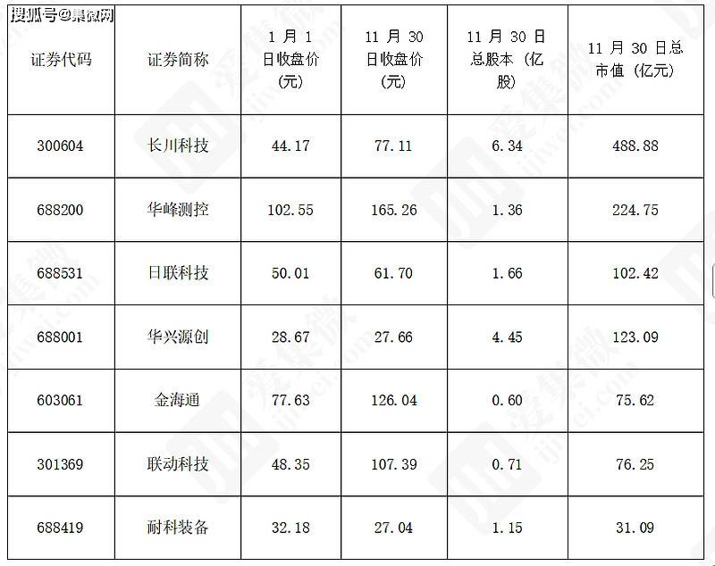 2025年,半导体后道设备行业股价普遍大涨,截止11月30日,涨幅前三名是联动科技(122.11%)、长川科技(74.57%)、华峰测控(12.82%),体现出国产半导体测试设备在高端化和国产替代浪潮中的强劲增长潜力。仅有耐科装备(15.97%)、华兴源创(3.52%)股价下跌。
