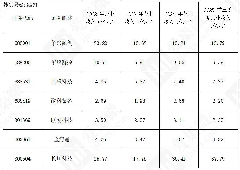2025 年前三季度营业总收入前三的企业分别是长川科技(约 37.79 亿元)、华兴源创(约 15.79 亿元)、华峰测控(约 9.39 亿元)。长川科技凭借其在半导体测试设备领域的深厚技术积累和广泛的客户基础,规模优势明显,形成了较高的规模壁垒。其产品覆盖多种测试设备,能够满足不同客户的多样化需求,在市场上占据较大份额。而 2025 年前三季度营业总收入同比增长前三的企业为金海通(87.88%)、华峰测控(51.21%)、长川科技(49.05%)。金海通受益于市场需求的增长以及自身产品竞争力的提升,实现了快速的市场开拓,产品销量大幅增加,从而推动了营收的高速增长。