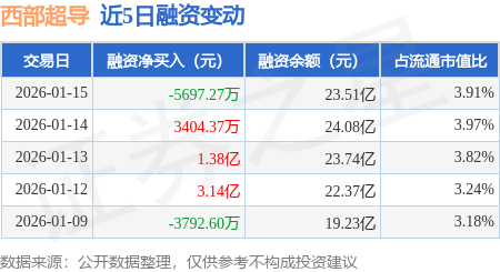 证券之星消息,1月15日,西部超导(688122)融资买入4.29亿元,融资偿还4.86亿元,融资净卖出5697.27万元,融资余额23.51亿元,近20个交易日中有12个交易日出现融资净买入。