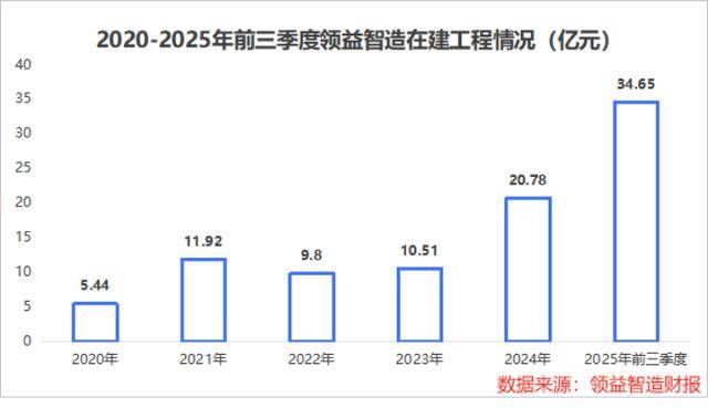 2020年,领益智造的在建工程是5.4亿元,到2024年已经增长到20.8亿元。而到了2025年前三季度,这个数字更是达到了34.7亿元,同比暴增74.9%。这些钱花在哪里了?