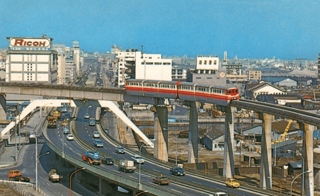 ◇ 图为上世纪70年代的日本东京的轻轨和高架桥