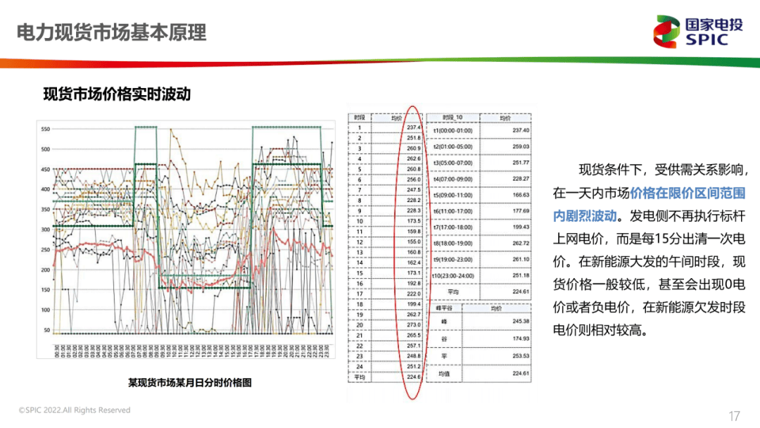 现货条件下,受供需关系影响,在一天内市场价格在限价区间范围内剧烈波动。发电侧不再执行标杆上网电价,而是每15分出清一次电价。在新能源大发的午间时段,现货价格一般较低,甚至会出现0电价或者负电价,在新能源欠发时段电价则相对较高。