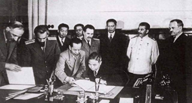 随着二战的结束,美英苏三国通过《雅尔塔协定》,在没有告知中国的情况下,分配了中国的利益。蒋介石为了拉拢苏联和美国,签署了《中苏友好同盟条约》,公开承认了苏联在中国的非法权益,这为日后中国捍卫领土主权带来了不小的难题。