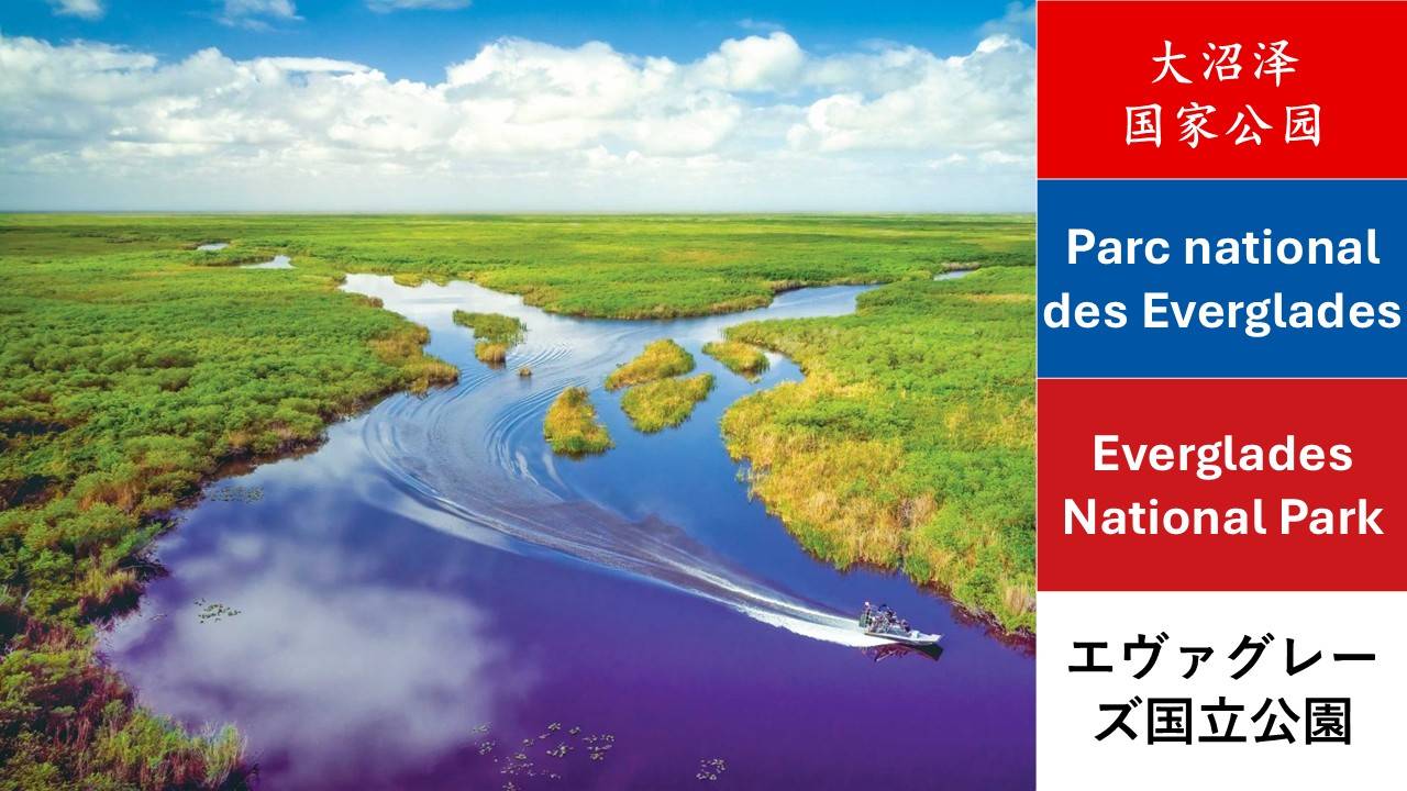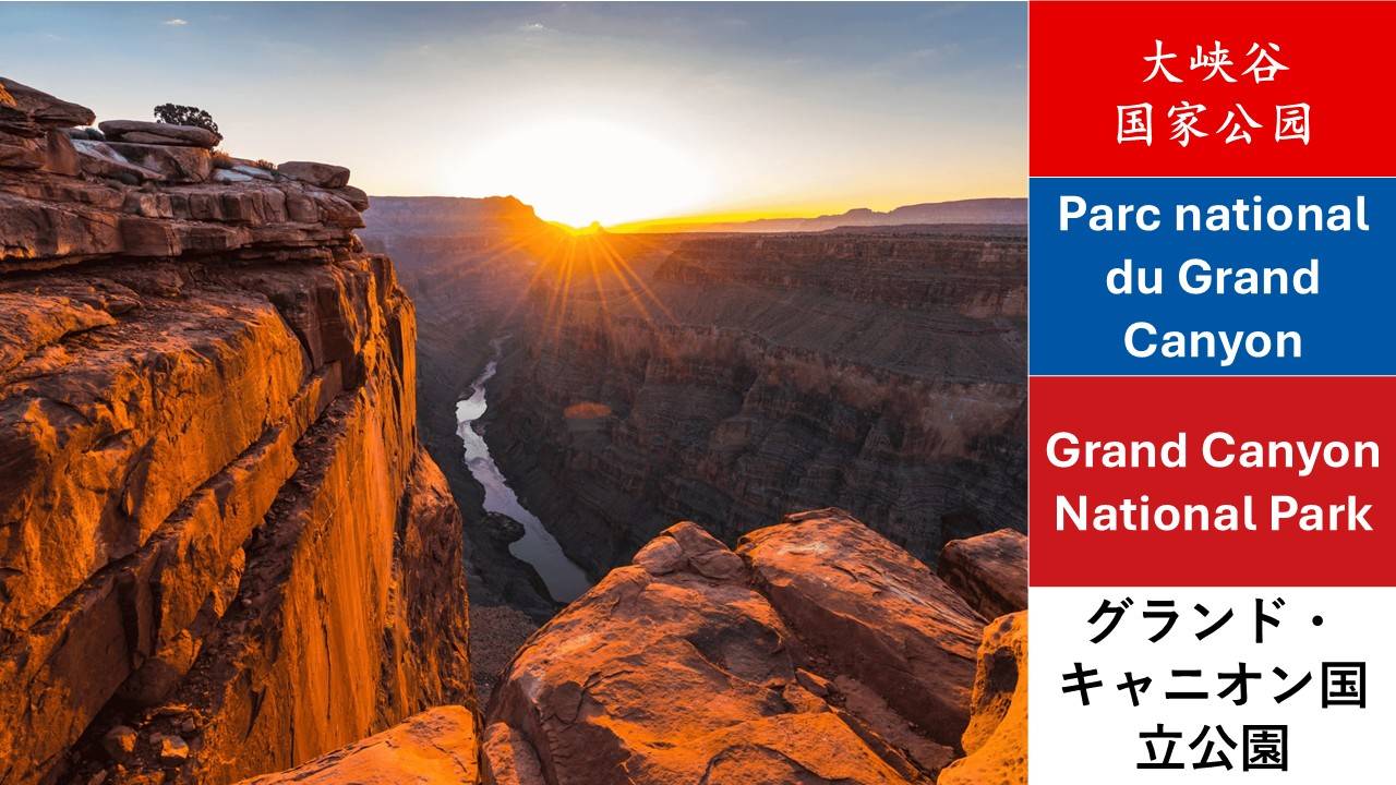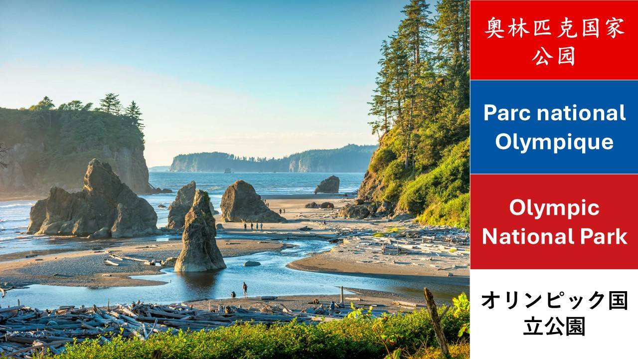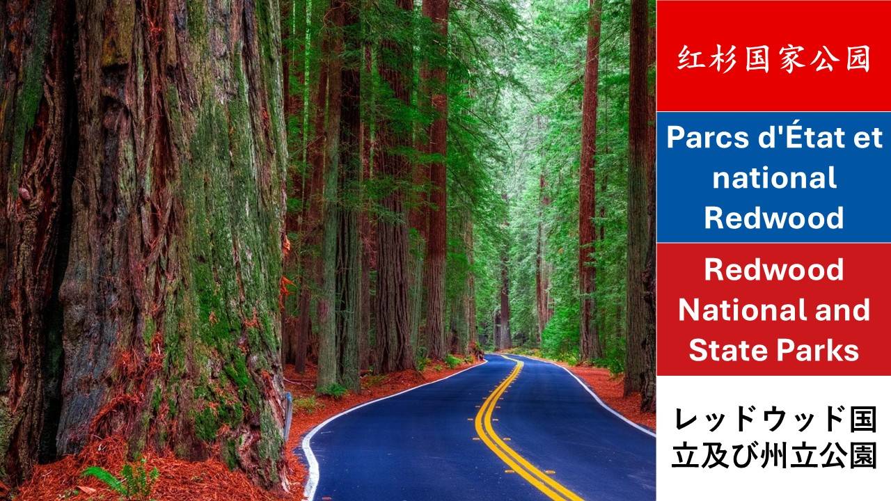 美国的世界遗产第一辑,10个,中文、法文、英文、日文名称。