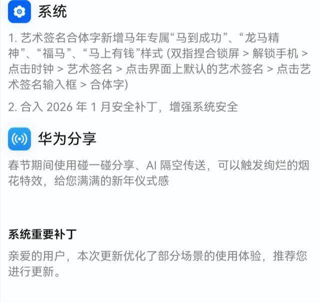 眼看着2026年的春节就要到了,华为这波系统推送的时间点卡得是真的准。