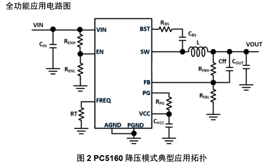 PC5160 是一款带内部开关的降压 DC/DC 稳压器,具备 SKIP 控制模式,将低静态电流与高开关频率相结合,可在广泛的负载电流范围内实现高效率的稳压。SKIP 模 式 使 用 短 的 “ 突 发 ” 周 期 通 过 内 部 功 率MOSFET 切换电感电流,然后是休眠周期,在休眠周期中,电源开关关闭,负载电流由输出电容器提供。在轻负载时,突发周期占总周期时间的一小部分,使平均电源电流最小化,大大提高了轻负载时的效率。PC5160 具有 4V-60V 的宽输入电压范围,从而最大限度地减少对外部浪涌抑制组件的需求。使其成为宽输入电源范围工业和高电池节数电池组应用的理想选择。PC5160 具有低阻值 130mΩ高侧和 95mΩ低侧功率管,可提供至少 3A 的输出电流能力,具有出色的负载和线路瞬态响应。PC5160 可应用于多种应用中,以有效地调节更高的电压。此稳压器非常适合 48V 电源总线范围。附加功能包括:软启动,热关机,UVLO 欠压锁定,最大占空比限制定时器,和智能电流限制关闭定时器。井且集成了输出短路保护,在 FB 电压较低 时提 供HICCUP 模式以避免短路时过热。