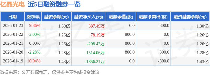 亿晶光电融资融券信息显示,融资方面,当日融资买入1456.29万元,融资偿还1068.8万元,融资净买入387.49万元。融券方面,融券卖出0.0股,融券偿还800.0股,融券余量0.0股,融券余额0.0万元。融资融券余额1.3亿元。