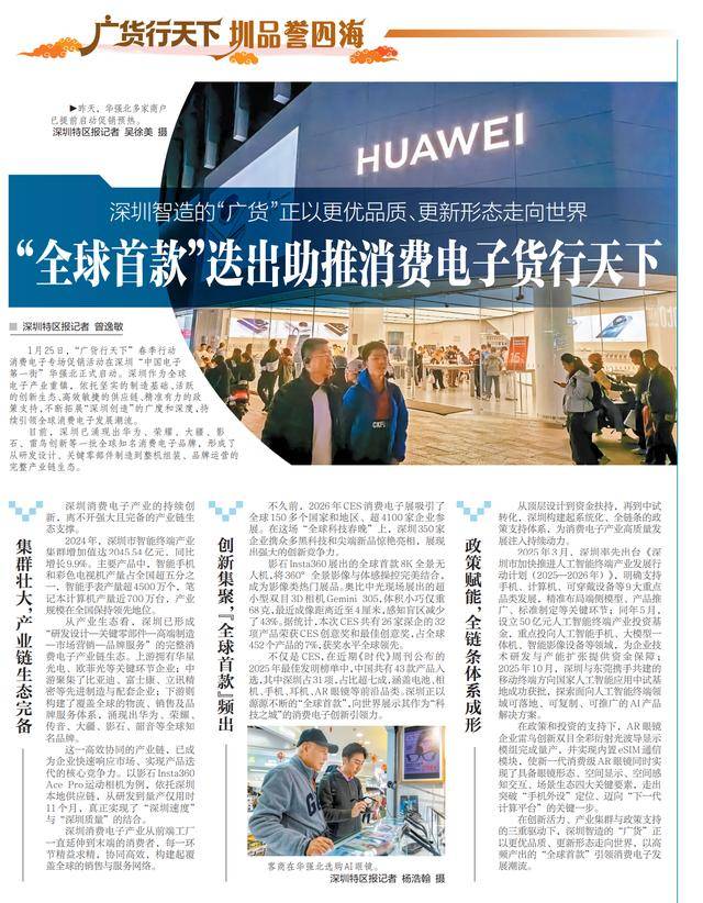在创新活力、产业集群与政策支持的三重驱动下,深圳智造的“广货”正以更优品质、更新形态走向世界,以高频产出的“全球首款”引领消费电子发展潮流。
