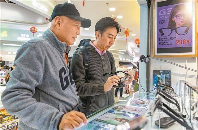 客商在华强北选购AI眼镜。 深圳特区报记者 杨浩翰 摄