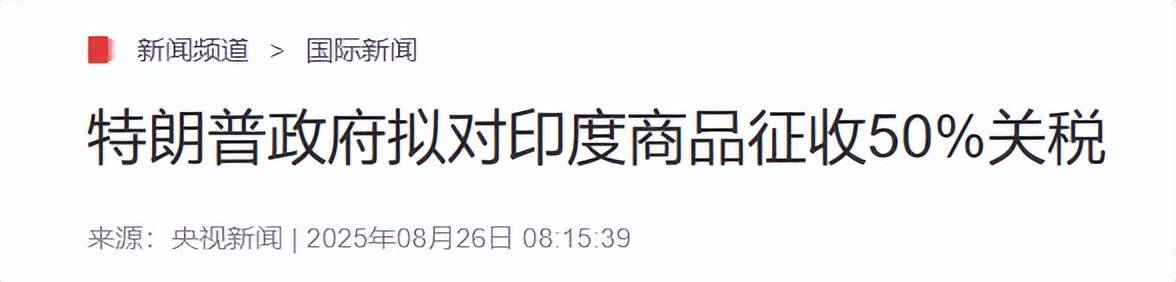 参考资料: 《印度总理莫迪乘机抵达天津 出席2025年上合组织峰会》2025年08月30日 来源:央视新闻客户端 《特朗普政府拟对印度商品征收50%关税》2025年08月26日 来源:央视新闻