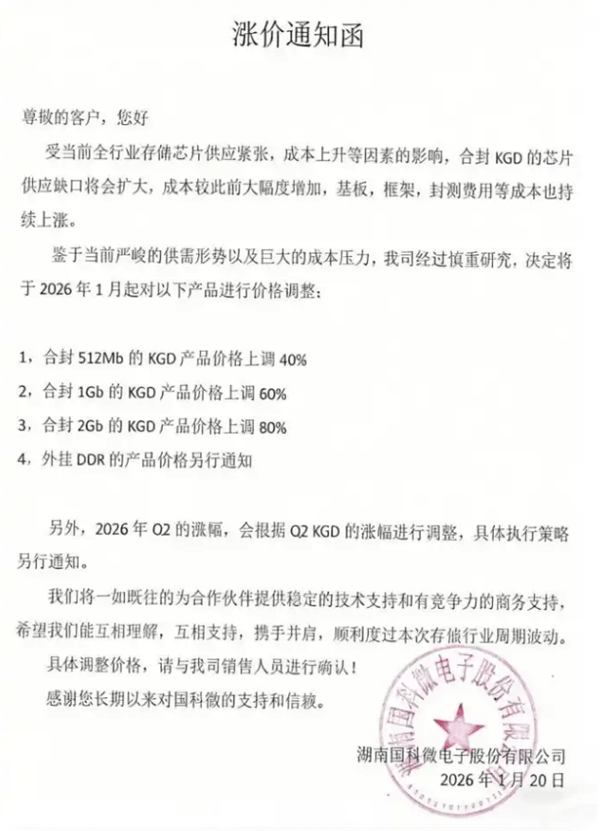 在此之前,国科微也已向客户下发涨价通知。