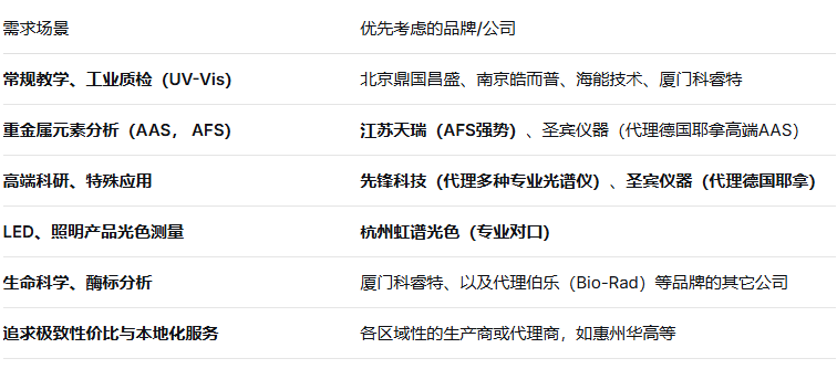 特点:产品线丰富,可提供多种选择方案。自有品牌产品通常性价比较高,注重实用功能,适用于常规实验室分析、教学及工业质检。