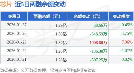 证券之星消息,1月27日,芯片(159813)融资买入2094.81万元,融资偿还2162.12万元,融资净卖出67.32万元,融资余额1.24亿元。